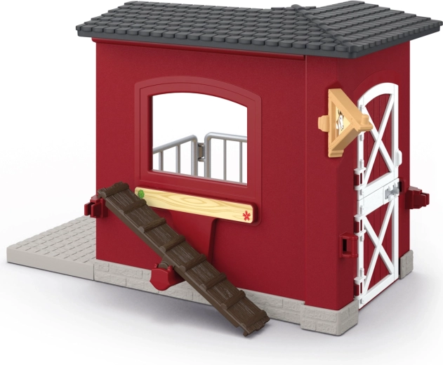 Stabilen hlevček z ograjo in funkcionalnimi vrati spodbuja domišljijo ter ponuja veliko igralnih scenarijev na kmetiji.