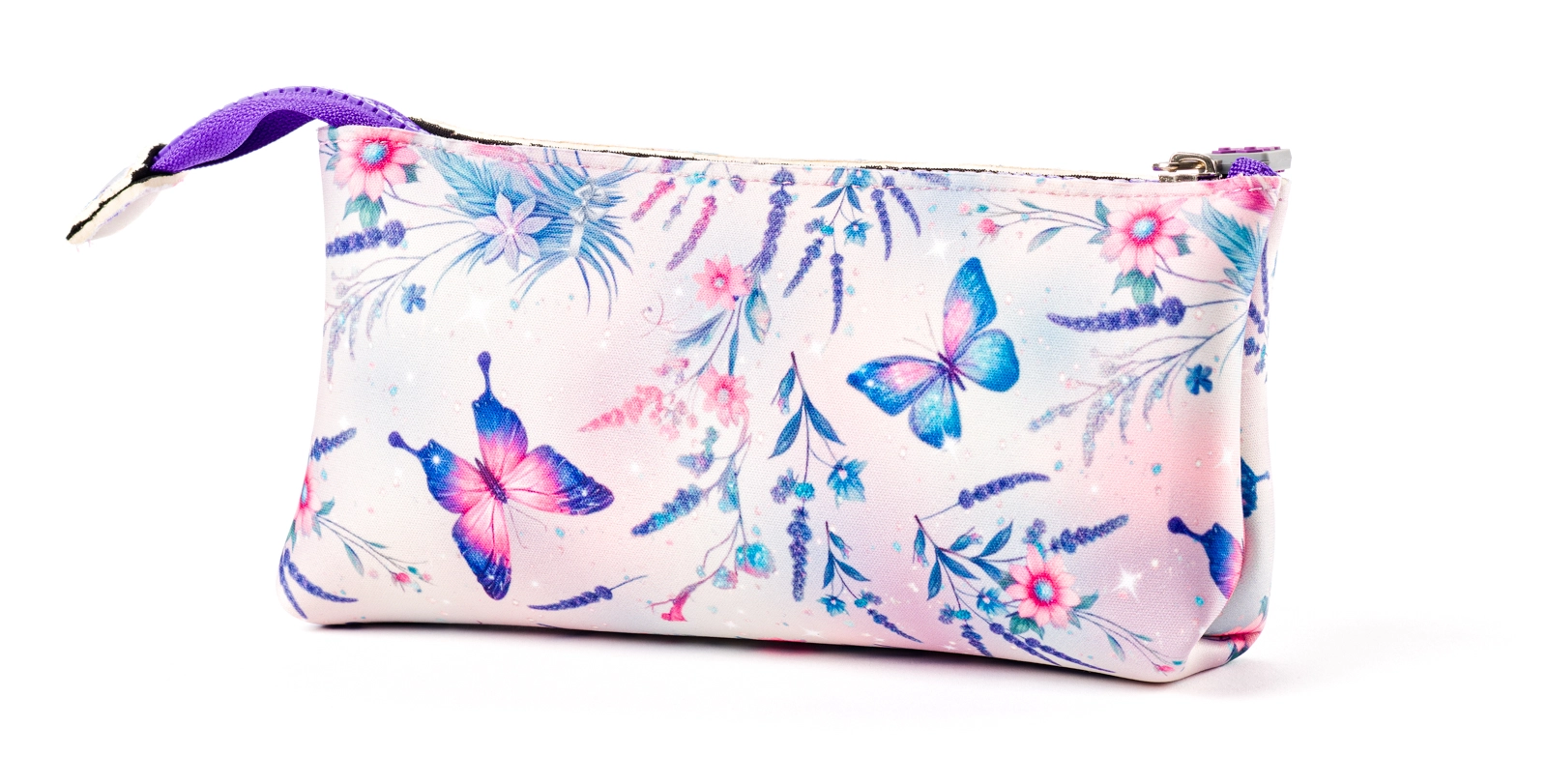 Stilski etui s cvetlicami in metulji bo navdušil tako otroke kot odrasle. Zahvaljujoč mehkem in prožnem neoprenu varno zaščiti pisala, kozmetiko in drobno elektroniko. Velika zadrga olajša vsakodnevno uporabo in pregled nad vsebino.