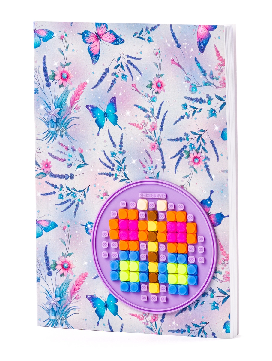 Ta beležnica A5 z motivom pisanih metuljev združuje praktičnost in zabavo. Zahvaljujoč vgrajenemu silikonskemu panelu PIXIE CREW si lahko otroci iz piksljev kadar koli ustvarijo lasten dizajn, ime ali simbol ter platnice preprosto prilagodijo razpoloženju. Beležnica je odlična za zapisovanje nalog, vodenje dnevnika, skiciranje in hitre zapiske.