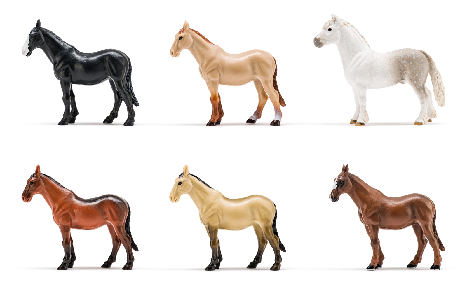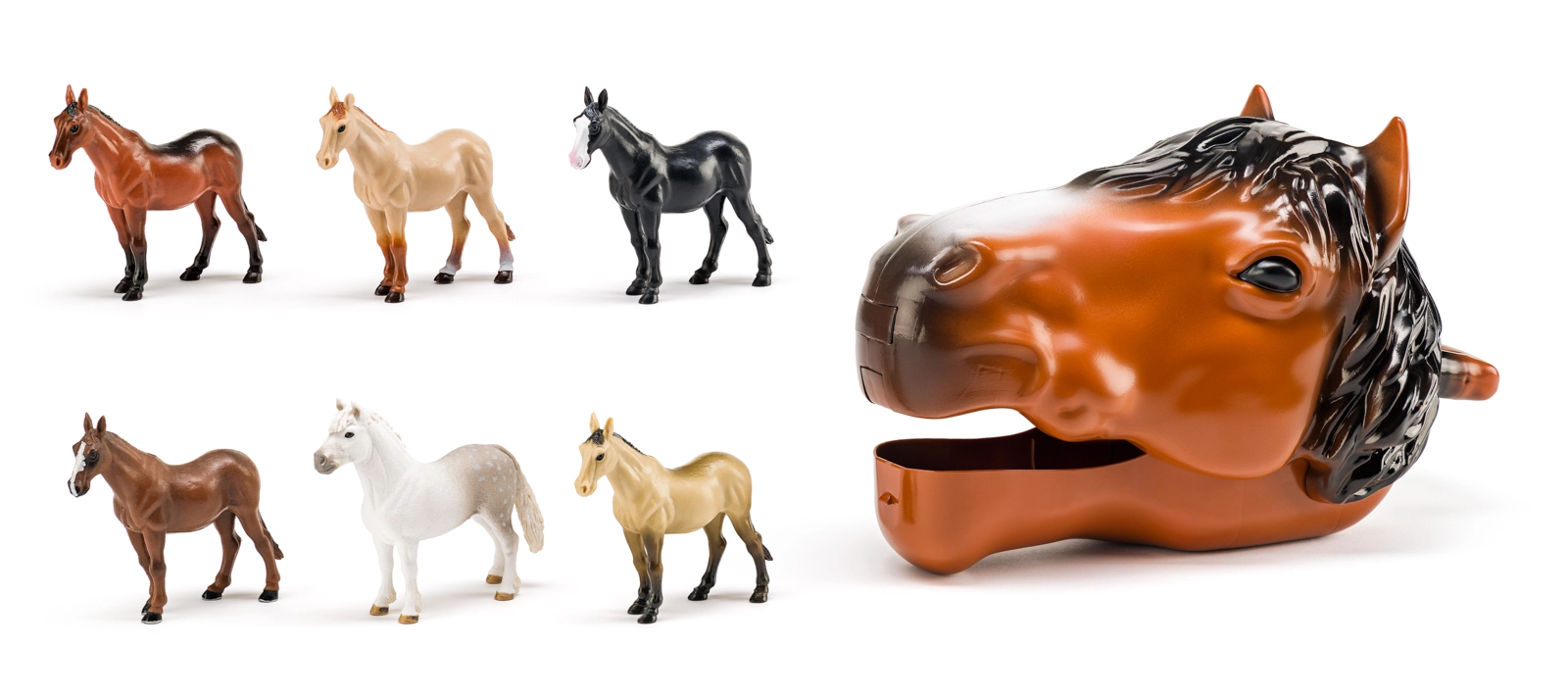 V notranjosti boste našli 6 konjičkov v različnih barvah, vključno z ahaltekinškim in lisastim. Idealno za ustvarjalno igro in kot izobraževalni modeli.