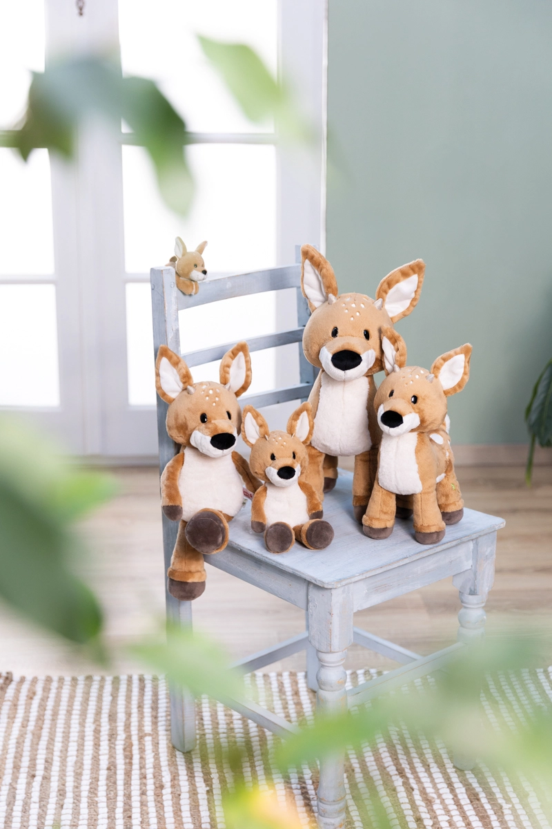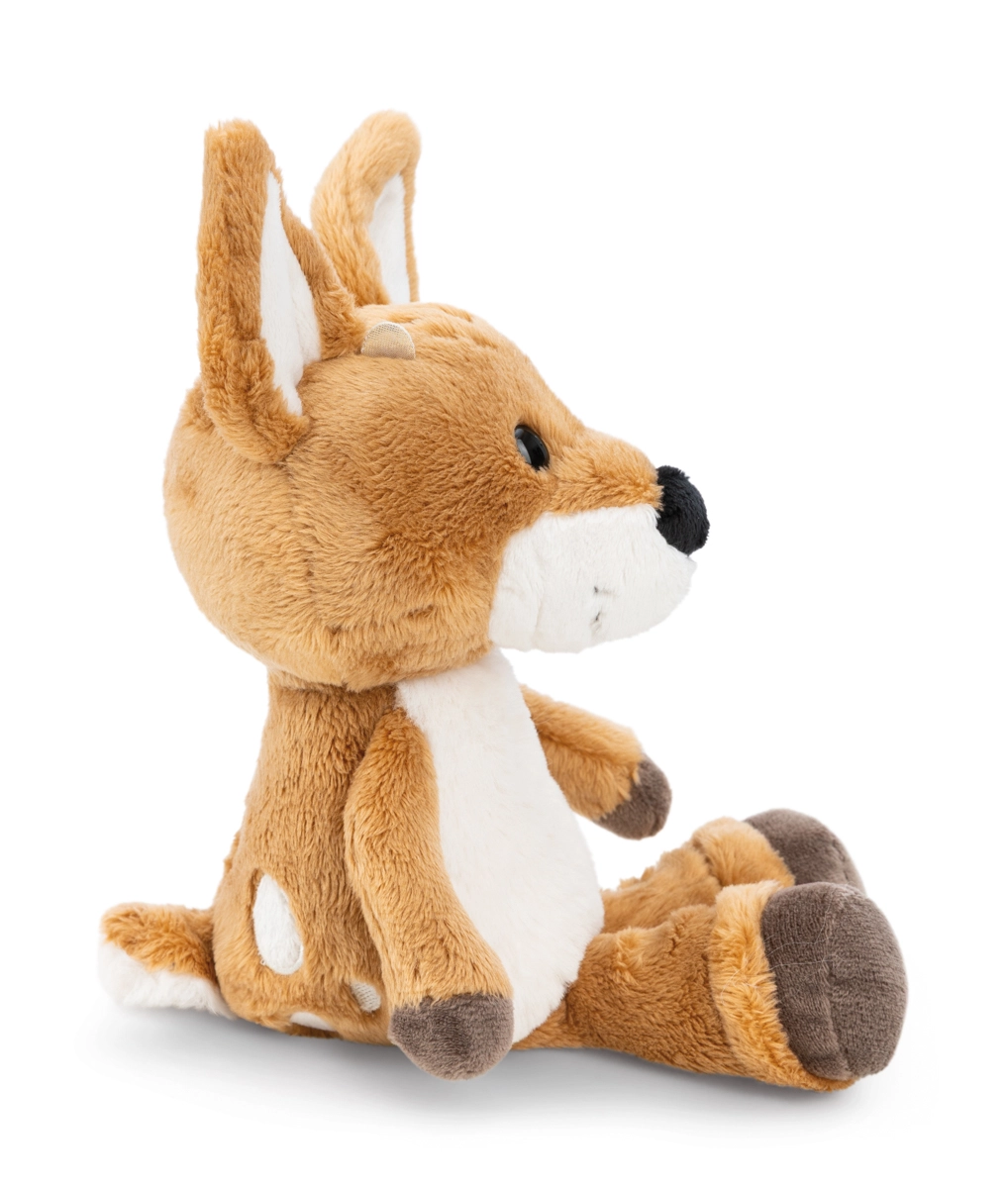 Plišasti srnjaček René iz linije Forest Friends prinaša otrokom in staršem kombinacijo ljubkega dizajna in odgovornega pristopa. Telesa v rjavo-beli barvi z nežnimi pikicami, mehke tačke in dodelan vezen detajl na nogi naredijo iz te igrače čudovito dekoracijo in zvestega prijatelja za vsak dan.