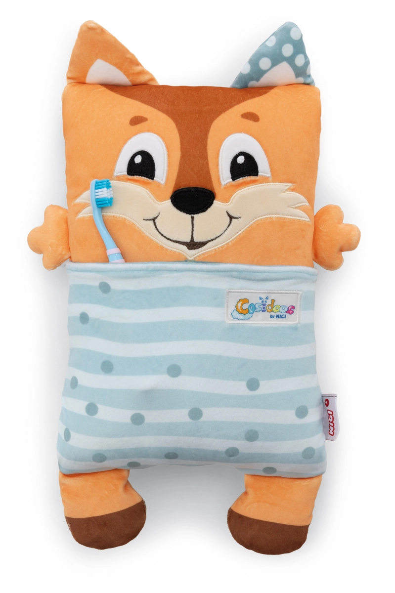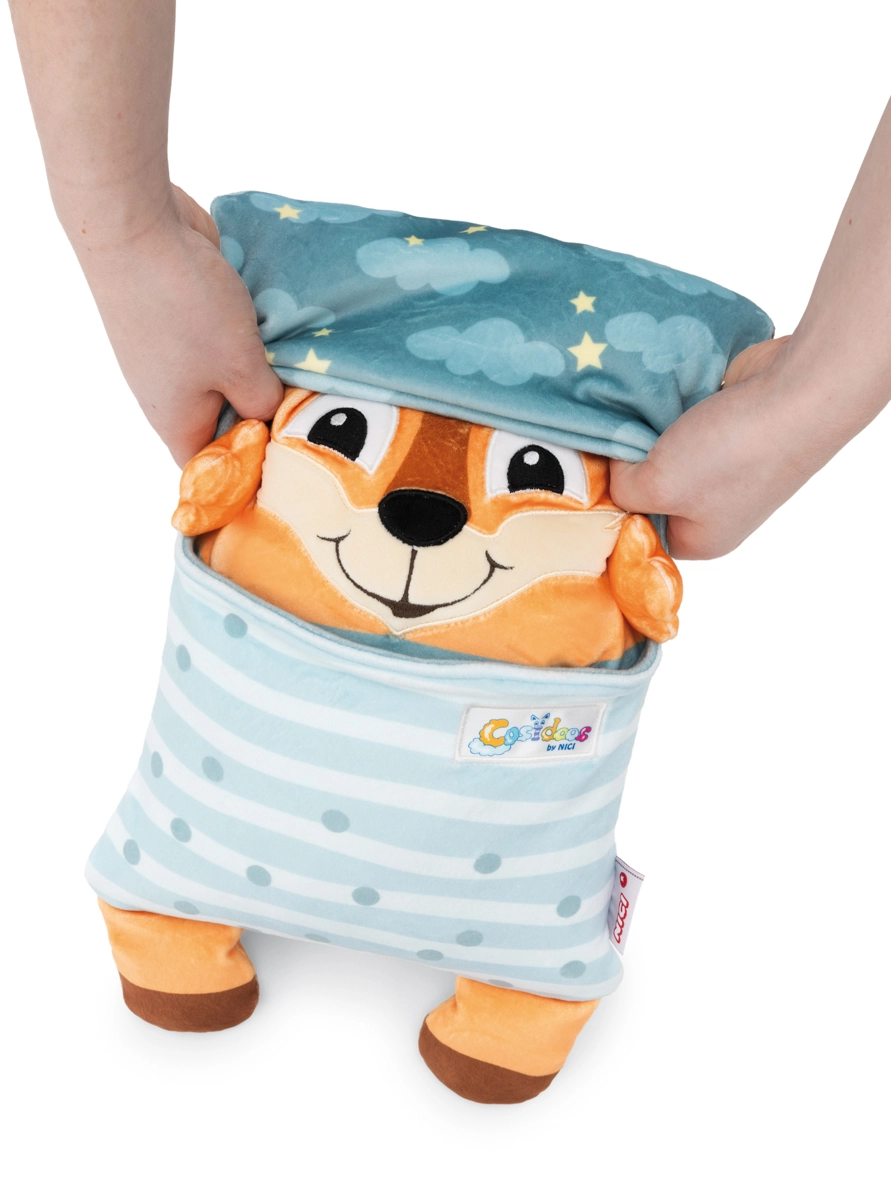 Prisrčna lisica NICI Cosidoos je plišasta igrača 2v1, ki jo z enim gibom spremenite iz veselega dnevnega prijatelja v pomirjujoč vzglavnik za spanje. Obojestranski motiv pomaga otrokom zaznavati ritem dneva in noči, mehki žepki za malenkosti skrijejo majhne zaklade, super mehek NICI pliš pa zagotavlja maksimalno udobje. Primerno od 12 mesecev dalje.