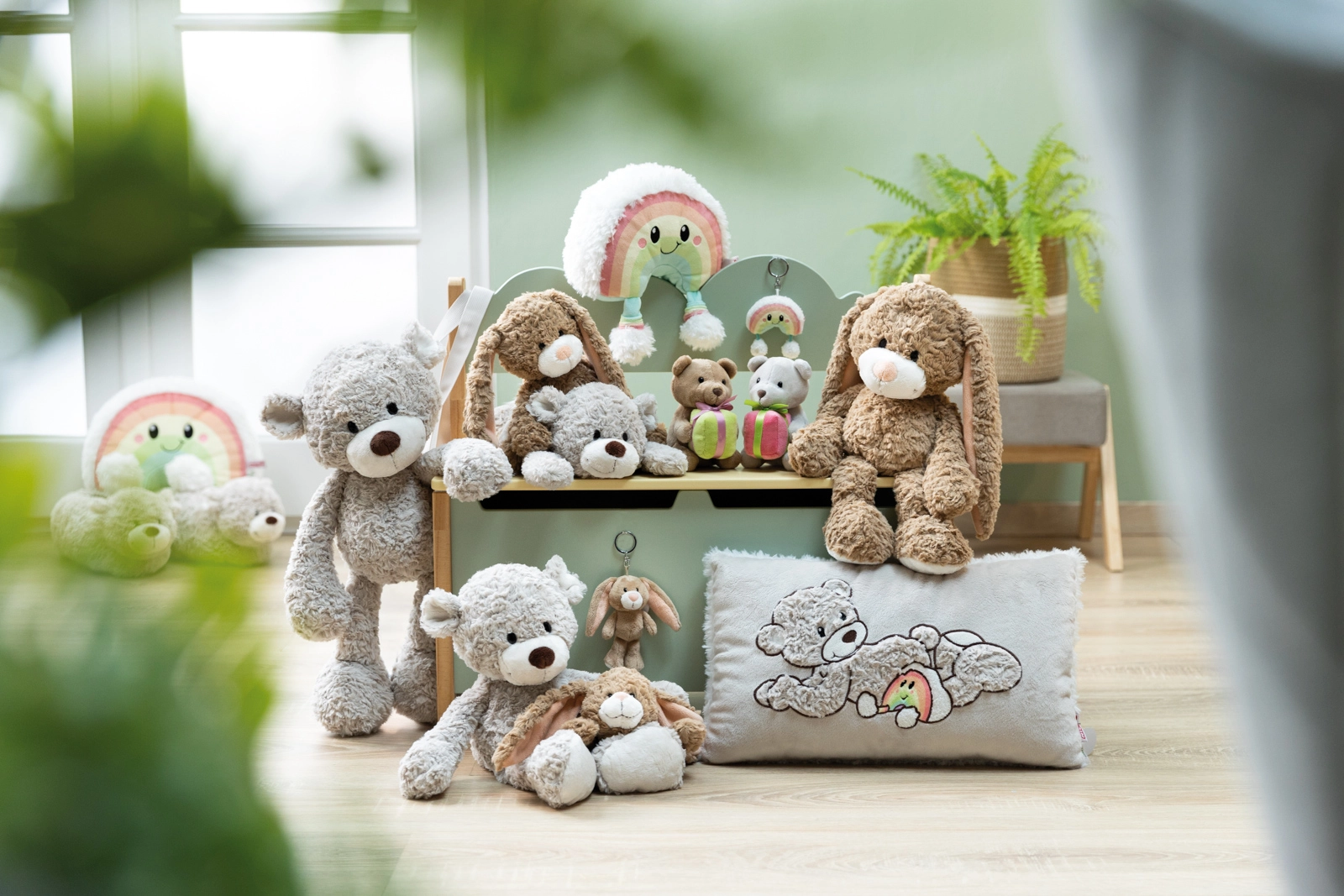 Nežno bež zajček z dolgimi ušeski je na dotik mehak in očara na prvi pogled – popoln kot darilo ali za lastno razvajanje.