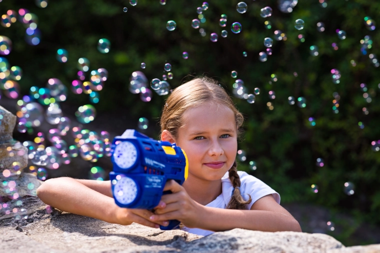 Dvajset izhodov za mehurčke ustvari gost tok nežnih mehurčkov za maksimalen učinek v trenutku – odlično za zabave in vsakodnevno igro.