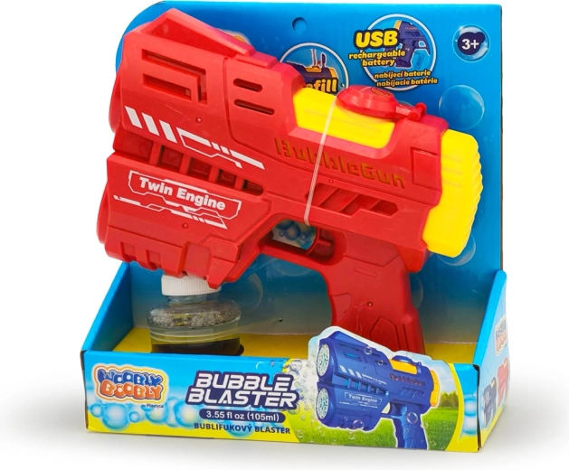 Začaraj svet mehurčkov z nove generacije WOOBLY BOOBLY blasterjem! Ponuja 20 odprtin za intenzivno ustvarjanje mehurčkov, osupljive LED svetlobne učinke in vgrajen 105 ml rezervoar za dolgo, neprekinjeno zabavo. Zahvaljujoč vgrajeni litijevi bateriji in USB polnjenju je vedno pripravljen razveseliti male in velike – kjerkoli in kadarkoli.