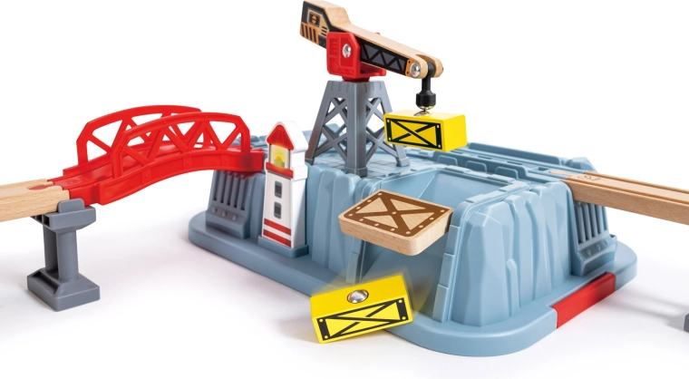 Dvignite in prestavljajte magnetni tovor med ladjo, vlakom in tovornjakom. Otroci urijo koordinacijo in doživijo realistično pretovarjanje v pristanišču.