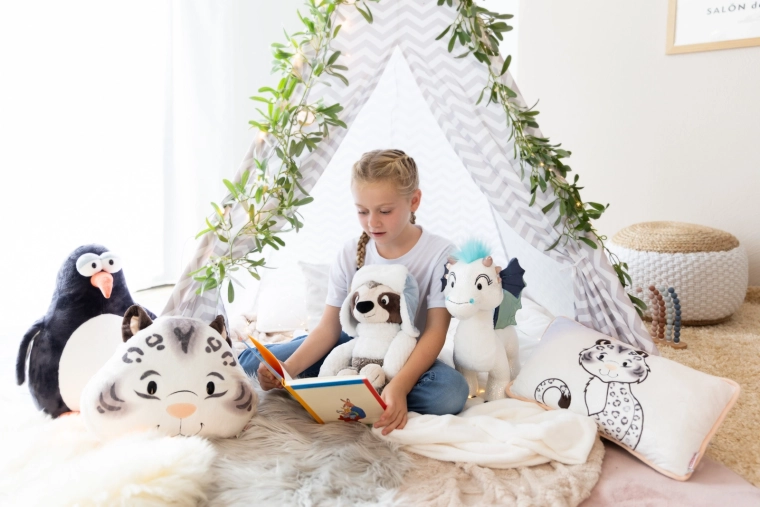 Izjemno mehak površinski material in prijetno polnilo nudita udobje pri spanju, branju in lenarjenju na kavču ali v otroškem teepeeju.
