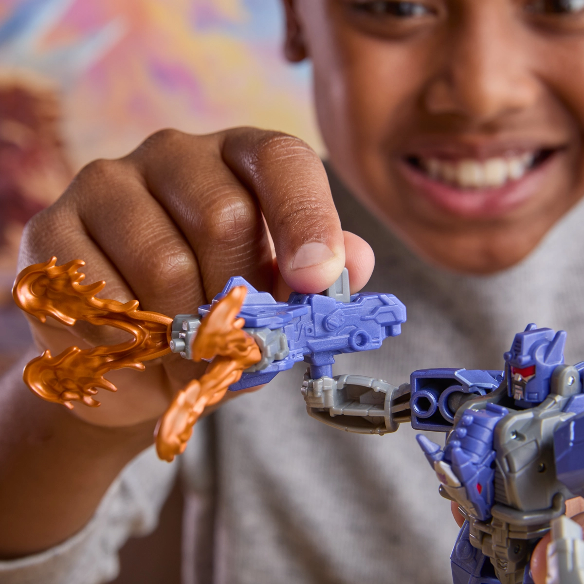 Vstopite v svet Cyberworlda, kjer Galvatron prinaša hitro pretvorbo, akcijsko poziranje in bogate možnosti igre. Zahvaljujoč enostavni transformaciji v samo 5 korakih lahko otroci v trenutku spremenijo robota v mogočnega zmaja. Kakovostna izdelava in trpežna plastika zagotavljata dolgo življenjsko dobo tudi pri intenzivni igri.