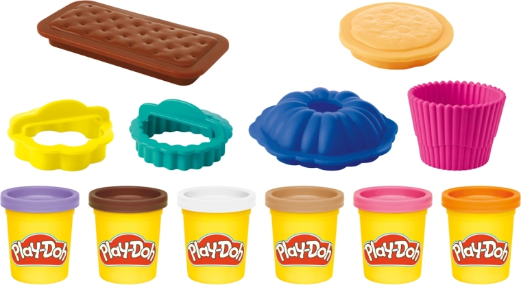 Set Hasbro Play-Doh male dobrote – slaščičarna ponuja vse, kar otroci potrebujejo za izdelavo sladkih stvaritev brez drobtin in nereda. Zahvaljujoč pestri paleti barv in priročnim orodjem lahko preprosto “spečejo” tortice, piškote in druge dobrote ter razvijajo svojo domišljijo.