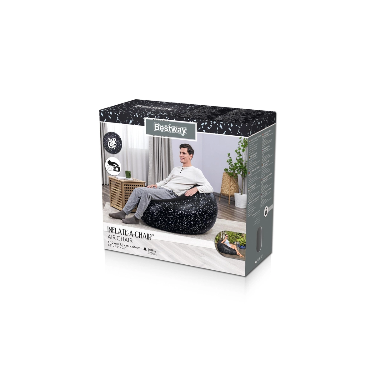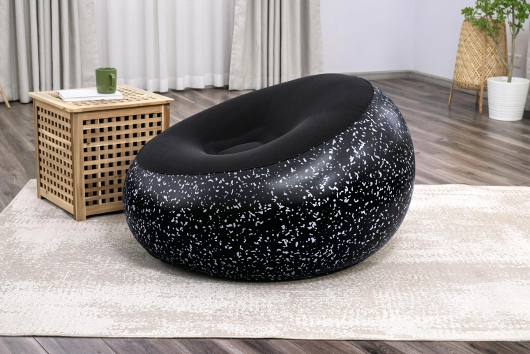 Udobje, kadarkoli in kjerkoli. Napihljiv naslanjač Bestway Inflate‑A‑Chair nudi prijetno sedenje z flockano (žametno) površino, ki je mehka na dotik in ne drsi. Stabilno obliko zagotavljata Coil‑Beam konstrukcija in dve zračni komori, zato naslanjač dobro drži in je udoben tudi pri daljšem sedenju.