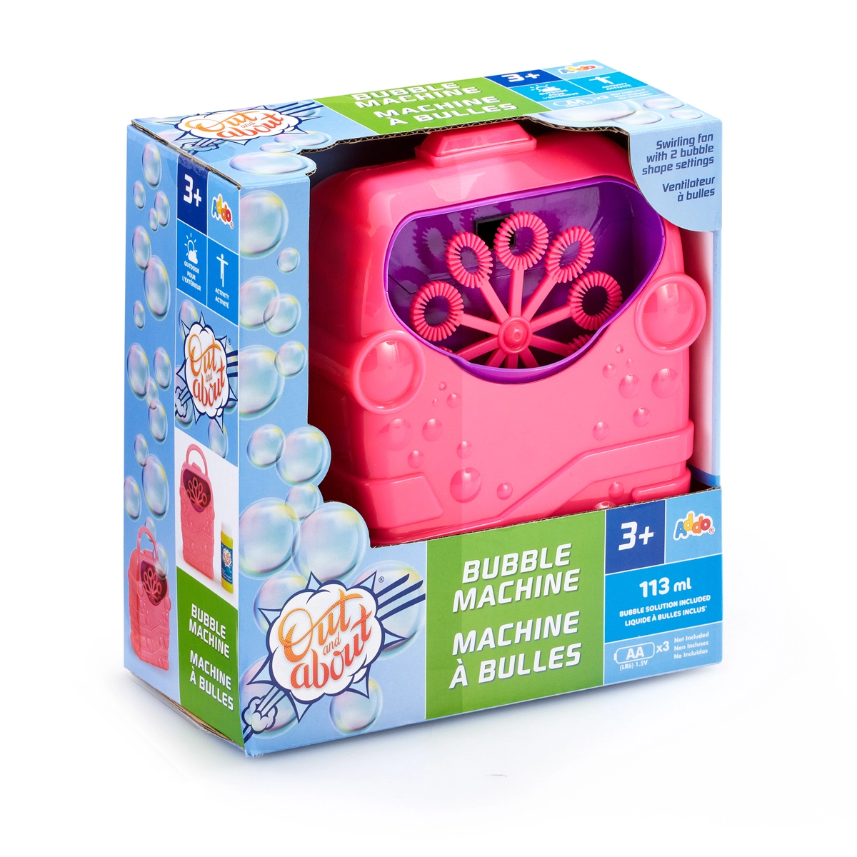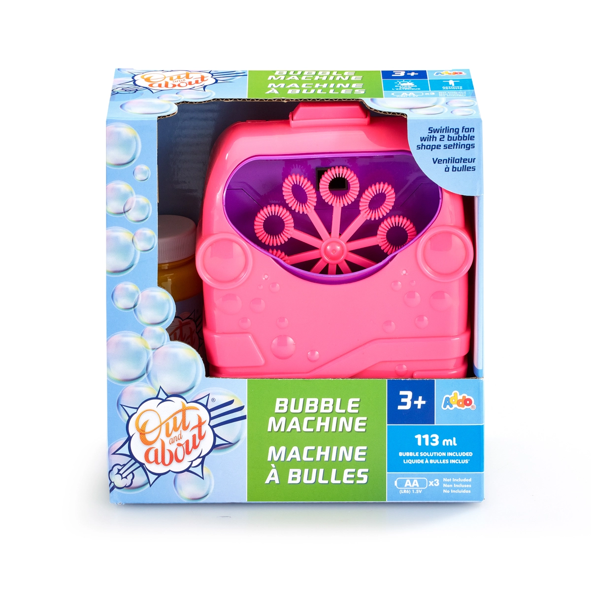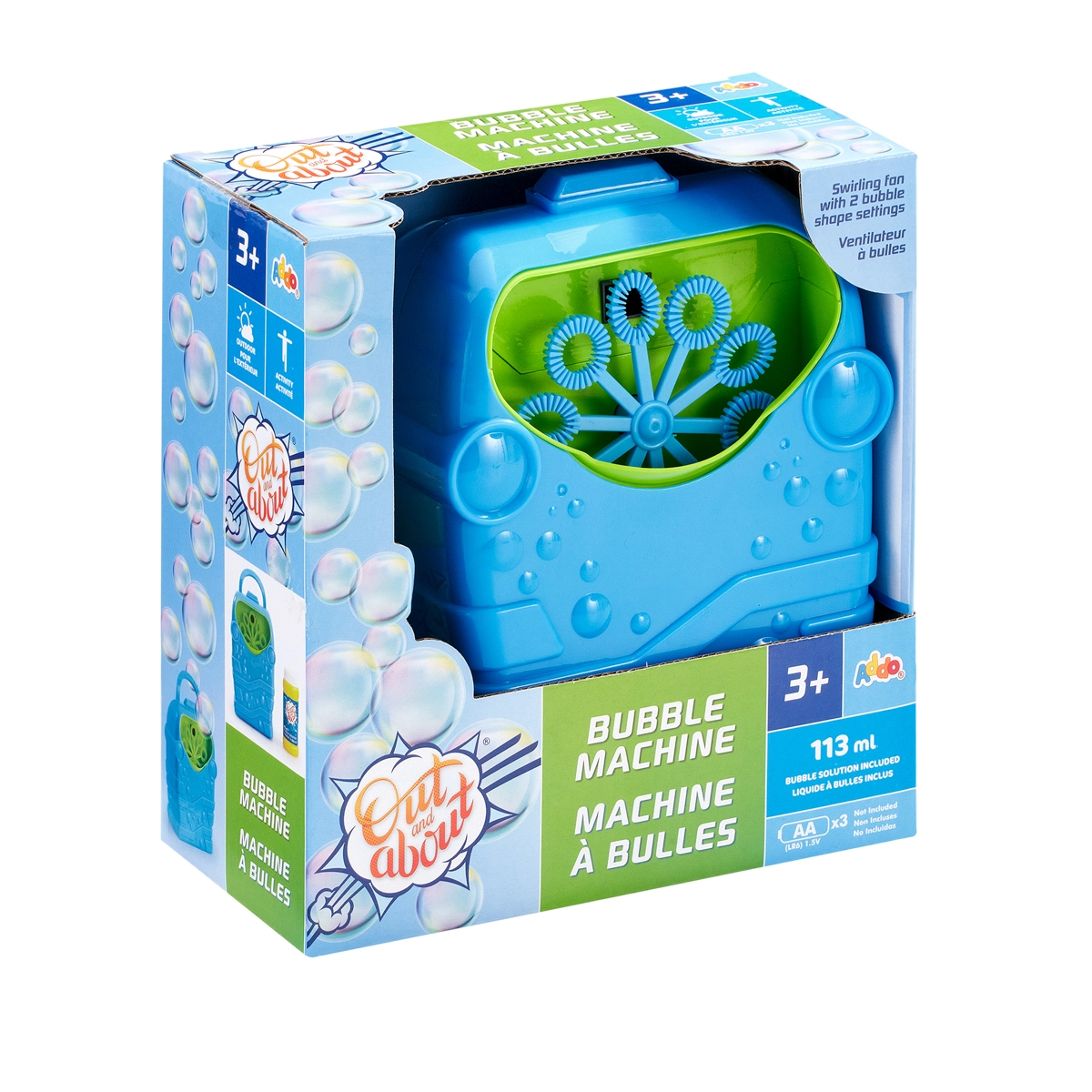 Uživajte v poletju, polnem veselja, s samodejnim izdelovalnikom mehurčkov ADDO. Dovolj je doliti priloženo raztopino, pritisniti gumb in večkratne vrtljive paličice ustvarijo tok čarobnih mehurčkov. Napajanje s 3× AA baterijami (niso priložene) in kompaktni ročaj za enostavno prenašanje. Primerno od 3 let.