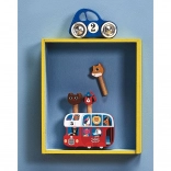 Modri avtomobilček Vilac je izdelan iz lakiranega lesa, kar zagotavlja njegovo vzdržljivost in hkrati eleganten videz. Ima kovinska gumirana kolesa, ki omogočajo gladko in tiho vožnjo. Zaradi posebne rešitve osi lahko avtomobilček zavija levo in desno, kar igri doda dinamiko.