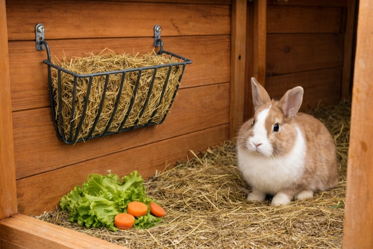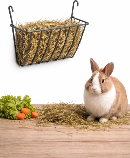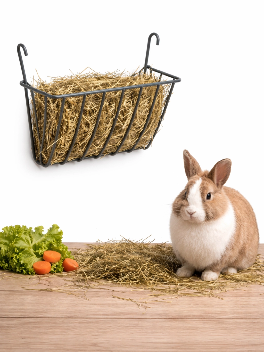 Praktično zgornje polnjenje skrajša čas hranjenja ter pomaga ohranjati seno čisto in lahko dostopno za kunce.