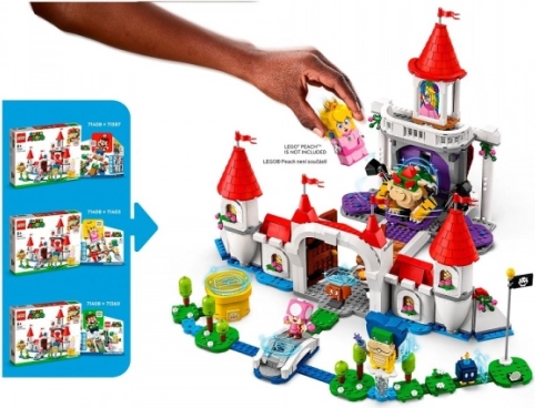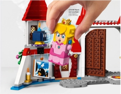 Vstopite v kraljestvo PRINCESKE PEACH z bogato dodelanim modelom gradu, ki bo razširil vaše proge LEGO Super Mario. Čaka vas prestolna dvorana z vrtljivo steno, za katero se skriva Bowser, vitraž s Peach, skrivna slika z akcijsko oznako in torta z Goombom. Ne manjkajo posebna grajska cev, časovni blok, most nad lavo in skleda s vijoličnim sadjem.