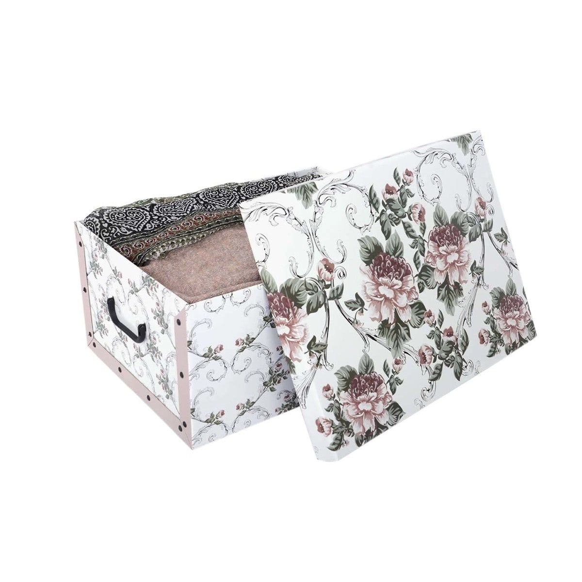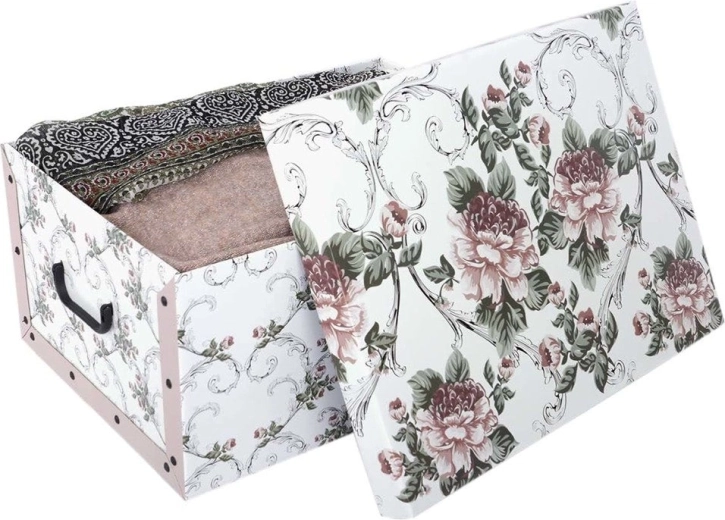 Iščete lepo in zanesljivo shranjevanje oblačil, dokumentov ali dodatkov? Škatla MAXI v dekorju Barok Antik združuje brezčasen videz s praktičnimi podrobnostmi. Zahvaljujoč čvrsti kaširani lepenkasti konstrukciji ohranja svojo obliko, enostavno se zlaga in prenaša po zaslugi integriranih ročajev.