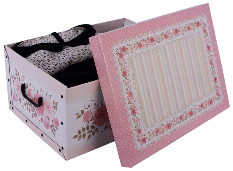 Škatla se zloži hitro in brez orodja, ima ojačane stene ter praktične ročaje za udobno prenašanje. Možno jo je zlagati eno na drugo za prihranek prostora v garderobi, pisarni, otroški sobi ali v kleti in garaži. Eleganten videz jo naredi tudi odlično idejo za darilo.