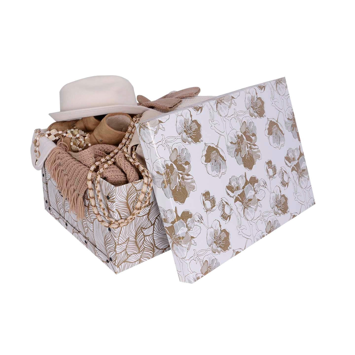 Odkrijte praktično in oblikovno dovršeno rešitev za shranjevanje oblačil, dokumentov, igrač in dodatkov. Ta velika škatla za shranjevanje združuje italijanski dizajn z ekološko proizvodnjo ter vašemu domu ali pisarni doda prefinjen pridih razkošja z motivom zlatih cvetov sakure.