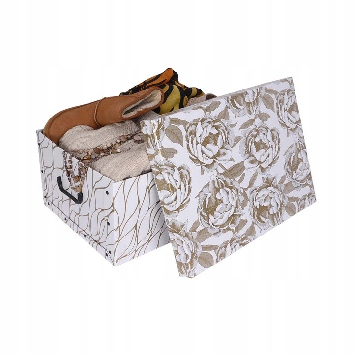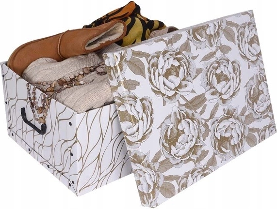 Škatla je idealna za pregledno shranjevanje oblačil, dokumentov, igrač in dodatkov. Primerna je za garderobo, pisarno, otroško sobo in odlično služi tudi kot stilsko darilno pakiranje.