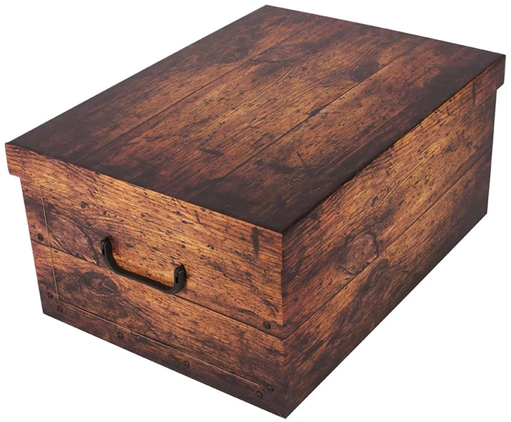 Elegantna arhivska in dekorativna škatla v dizajnu rjavega lesa je idealna za pregledno shranjevanje dokumentov, fotografij, knjig, igrač, oblačil in dodatkov. Lahka, a trpežna konstrukcija iz kašíranega kartona z leskom zagotavlja dolgo življenjsko dobo in enostavno vzdrževanje – površino lahko obrišete z vlažno krpo.