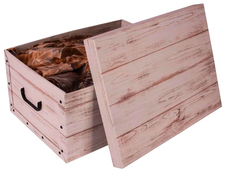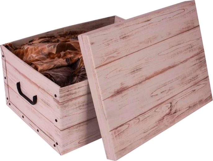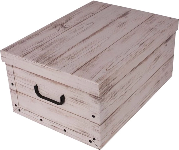 Praktične podrobnosti, kot so dvojni zgornji robovi, plastične zakovice za zagotavljanje trdnosti stranic in stranski ročaji za udobno prenašanje, povečujejo uporabniško udobje. Pokrov ne zahteva dodatnega zlaganja, montaža celotne škatle pa je hitra in intuitivna. Škatlo je mogoče enostavno zlagati eno na drugo, s čimer prihranite prostor v omari, na polici ali na tleh.