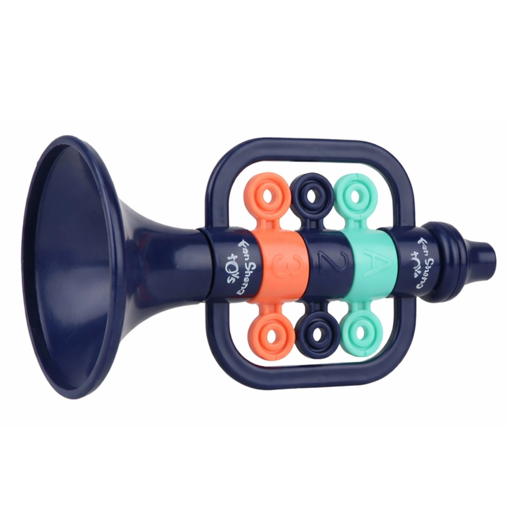 Barvita otroška trobentica z enostavnim oprijemom in trpežno plastiko. Spodbuja dihalno koordinacijo in zaznavanje tonov.