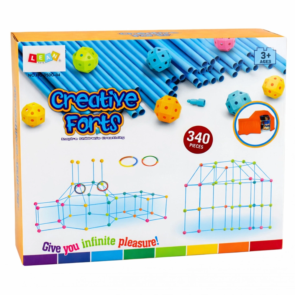 Odkrijte neskončne možnosti ustvarjanja s kompletom cevi in spojk s 340 deli. Lahka plastična konstrukcija, preprosto zaskočitev in trdno spajanje otrokom omogočajo gradnjo hišk, trdnjav, tunelov in kupol. Krajši deli so prožni za loke, daljše cevi zagotavljajo stabilne konstrukcije. Priložena je tudi velika pregrinjala za spremembo ogrodja v prijeten bunker.