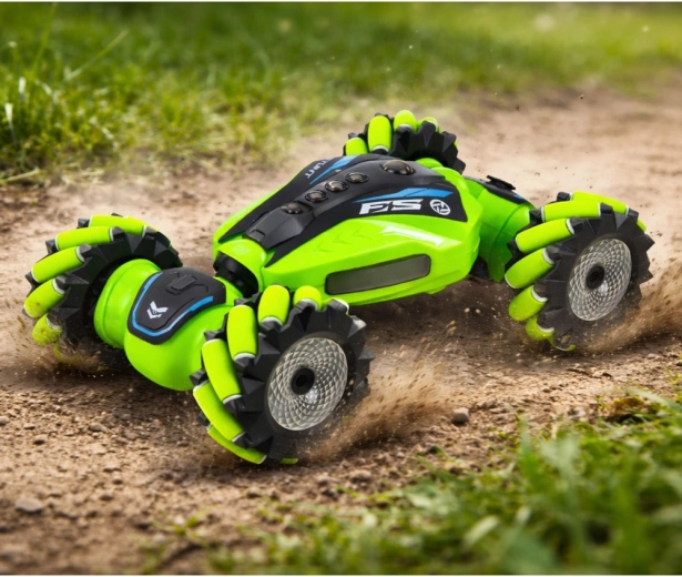 Doživite akcijsko vožnjo s tem kaskaderskim RC avtom 4x4, ki se odziva na upravljanje z gestami, upravljate pa ga lahko tudi s klasičnim upravljalnikom. Obvlada 360° obrate, drift in bočno vožnjo. Zahvaljujoč dvigu podvozja, off-road kolesom ter svetlobnim, zvočnim in parnim efektom nudi največ zabave otrokom in odraslim.