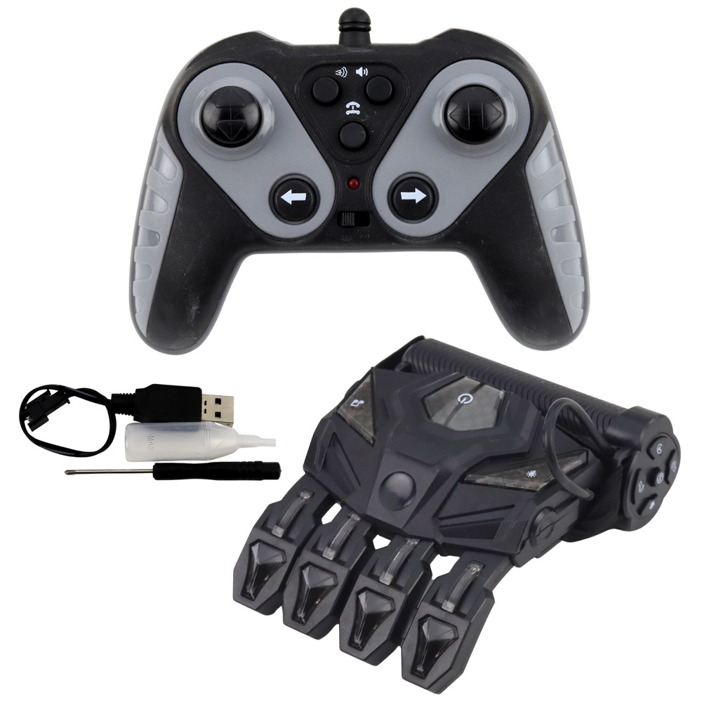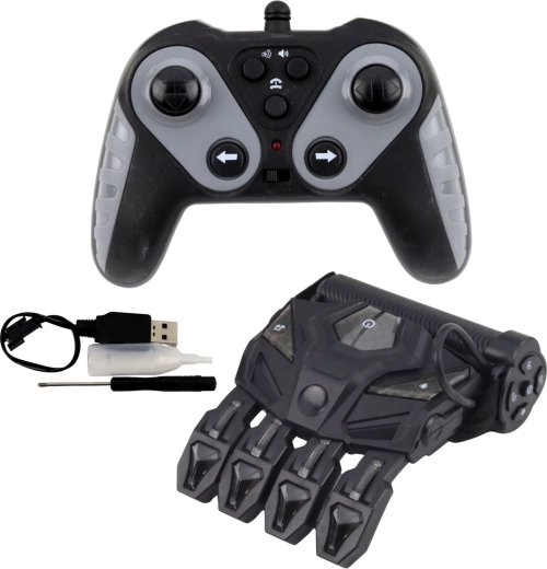 - RC avto, upravljalnik za geste (rokavica), daljinski upravljalnik, 2× akumulator, polnilec