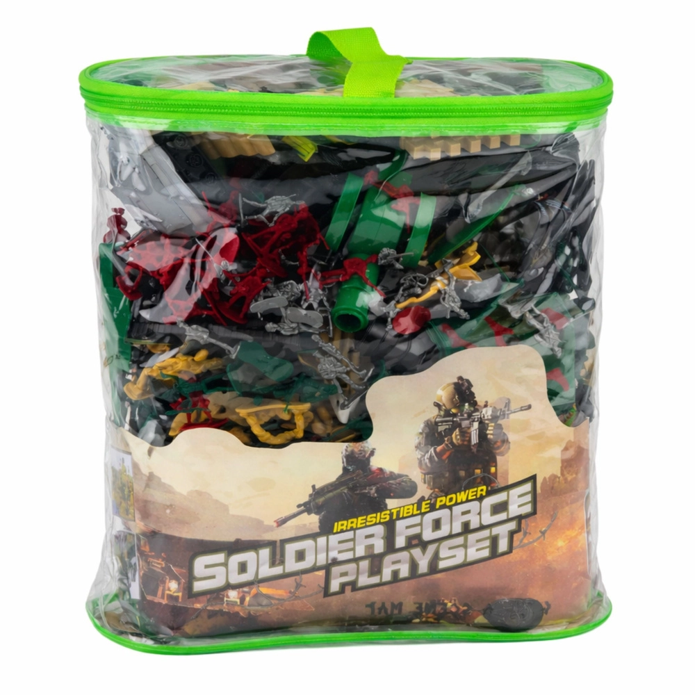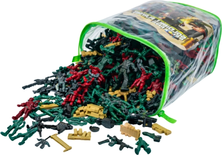 Odkrijte razširjeni vojaški set za ustvarjalno igro z do 300 deli – vojaki, vozila, topovi, orožje in bogati dodatki. Trpežne plastične figurice spodbujajo domišljijo, motoriko in timsko sodelovanje. Priročna prozorna torba z zadrgo olajša shranjevanje in prenašanje. Idealno za akcijske misije doma, na prostem in na poti.