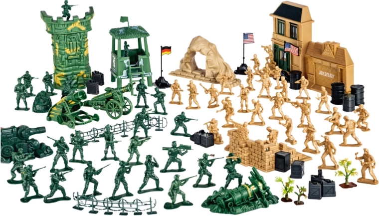 Ta velik vojaški set ponuja otrokom avtentično akcijsko igro z desetinami poz vojakov, topovi, ovirami in modularnimi scenariji. Zahvaljujoč bogatemu naboru dodatkov je mogoče zlahka graditi obrambne položaje, baze in poveljniška mesta ter ustvarjati napete bojne misije.