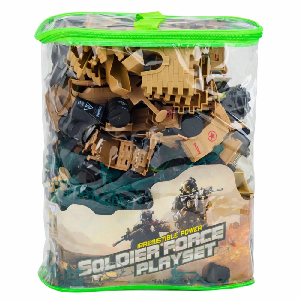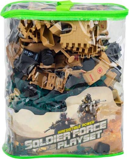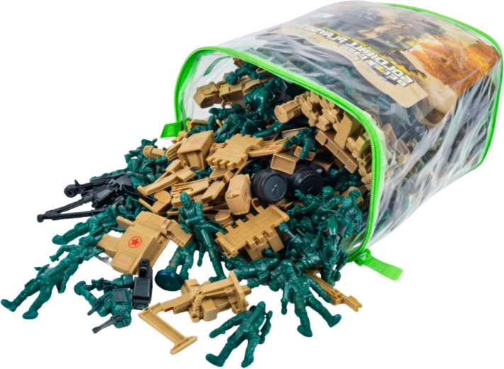 Obsežen vojaški set za otroke prinaša do 400 kosov za neskončne scenarije bitk, misij in obrambe baz. V njem najdete vojake, vozila, topove, pregrade in druge vojaške dodatke. Priložena je prozorna torba na zadrgo za preprosto shranjevanje in prenašanje. Trpežne plastične figurice spodbujajo kreativno igro, razvijajo domišljijo in fino motoriko – idealno za samostojno ali timsko zabavo doma in na prostem.
