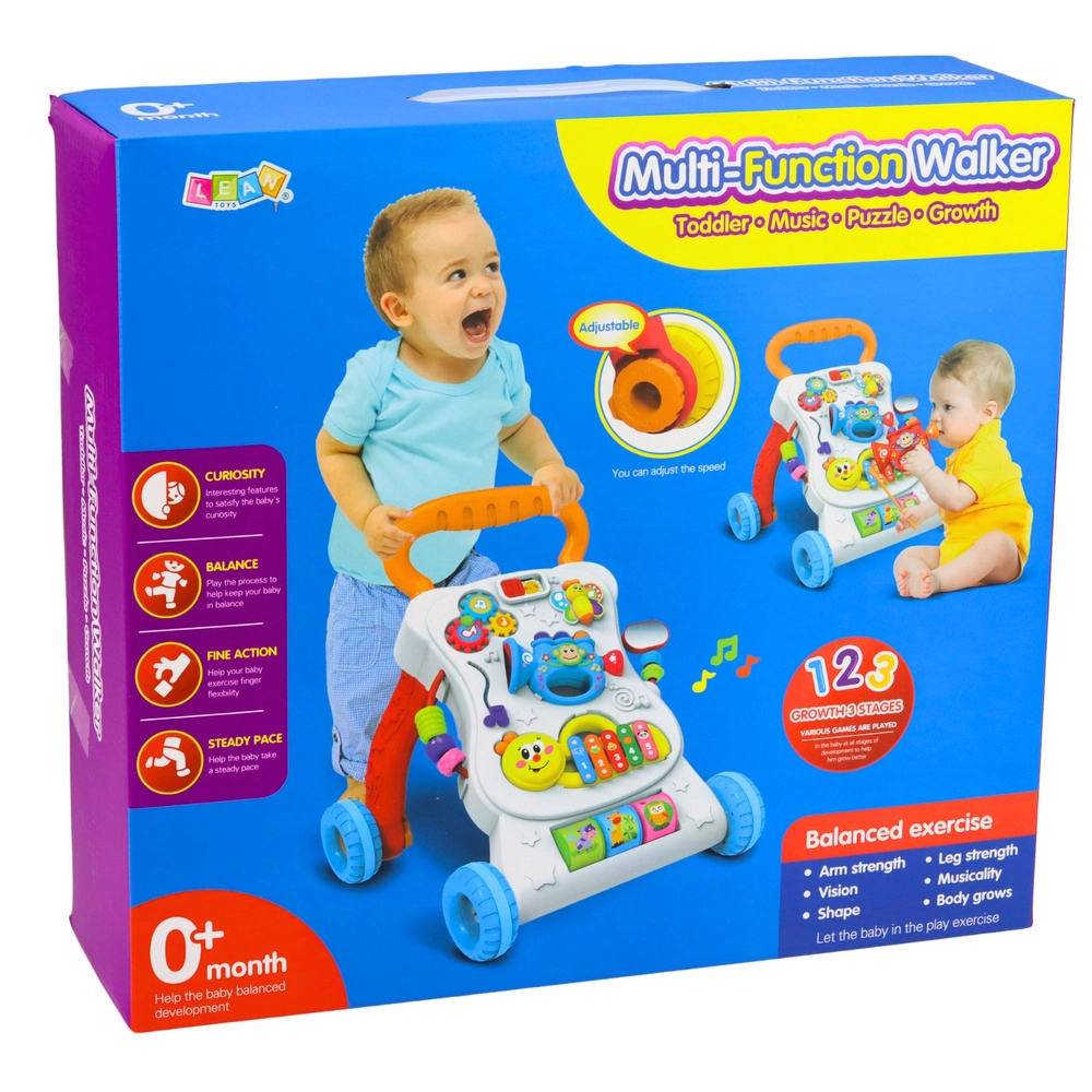 Multifunkcijski interaktivni hojnik 3v1 pomaga otrokom od prvih mesecev razvijati motoriko in čute. Zahvaljujoč funkciji potiskalnika otrok varno vadi ravnotežje, medtem ko barvna plošča ponuja glasbene elemente, gumbke, premične dele in preproste sestavljanke. Stabilna konstrukcija, nastavitev hitrosti koles in udoben ročaj zagotavljajo varno in zabavno učenje hoje.