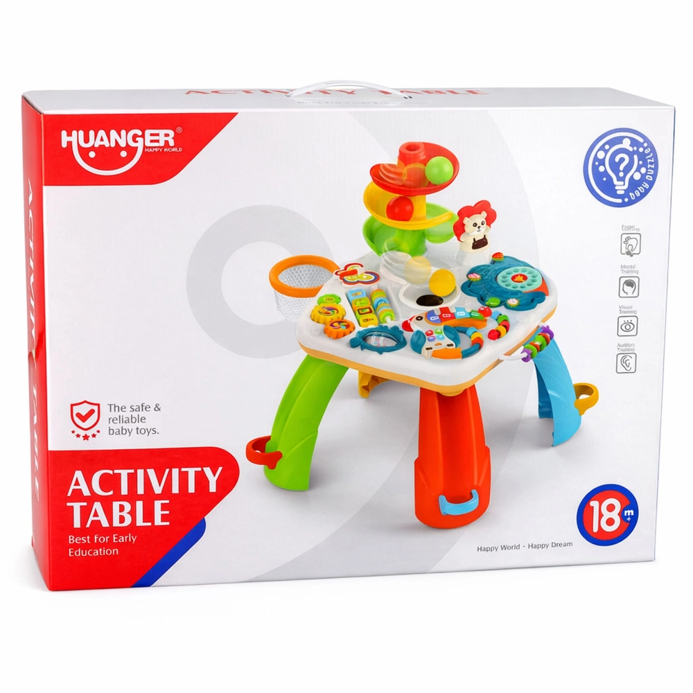 Interaktivna izobraževalna mizica za najmlajše združuje učenje in zabavo v enem. Ponuja barvni pianino z melodijami, tobogan za žogice, premične elemente ter svetlobne in zvočne učinke, ki razvijajo fino motoriko, koordinacijo ter zaznavanje barv in oblik.