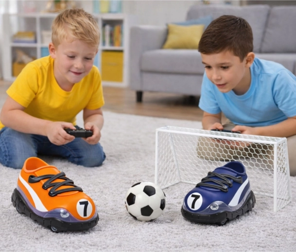 Spremenite dnevno sobo v mini igrišče. Dva zabavna RC avtomobila v obliki čevlja s številko 7 zmoreta driblati žogico, podajati in streljati na priloženi gol. Zaradi preprostih upravljalnikov bo igra všeč tudi mlajšim otrokom, starejši pa bodo cenili odzivnost in stabilen doseg 2,4 GHz.