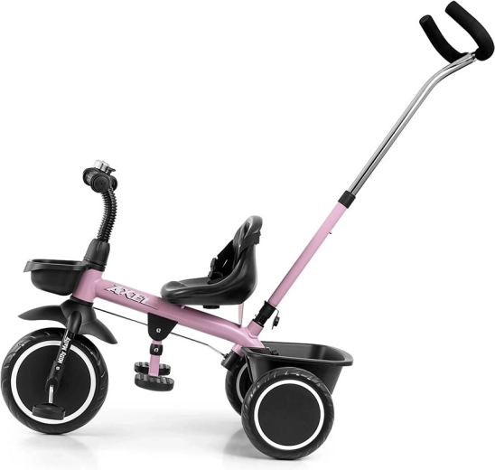 Lahek in trpežen otroški tricikel MILLY MALLY Axel za otroke 1–3 leta združuje udobje, varnost in zabavo. Zahvaljujoč nastavljivemu sedežu, odstranljivi vodilni palici ter možnosti blokade/sprostitev pedal raste skupaj z otrokom. Široka EVA kolesa zagotavljajo stabilnost na različnih podlagah, dva koška in zvonec razveselita male voznike, medtem ko varnostni pasovi dodajo staršem mir.
