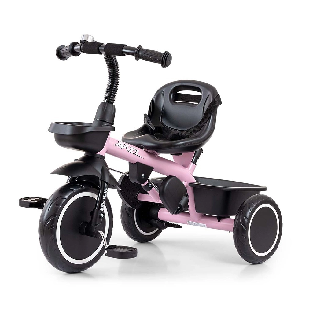 Tricikel MILLY MALLY Axel je idealna izbira za prve vožnje vašega otroka. Združuje čvrsto jekleno konstrukcijo s kakovostnimi plastičnimi deli, ergonomsko oblikovan sedež z prilagoditvijo razdalje do krmila in široka EVA kolesa za gladko in tiho vožnjo.