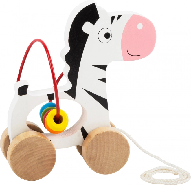Zebra ponuja igrivo izvedbo na kolesih z možnostjo premikanja s pomočjo vrvice. Zahvaljujoč kroglično stezo lahko otroci izboljšujejo motorične spretnosti.