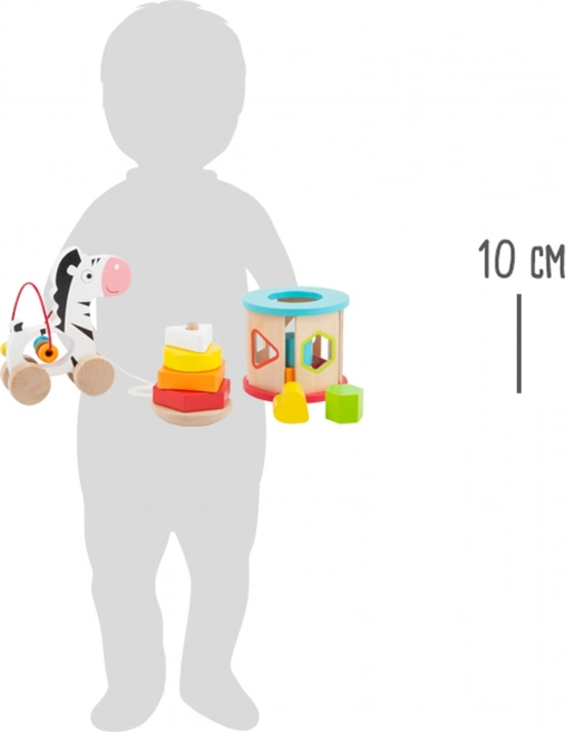 Ta igralni komplet je zasnovan za najmlajše otroke in ponuja raznolike aktivnosti, ki podpirajo motorični razvoj. Vsaka igrača v kompletu je skrbno narejena iz lesa in ima privlačen barvni dizajn, ki otroke priveže k igri:
