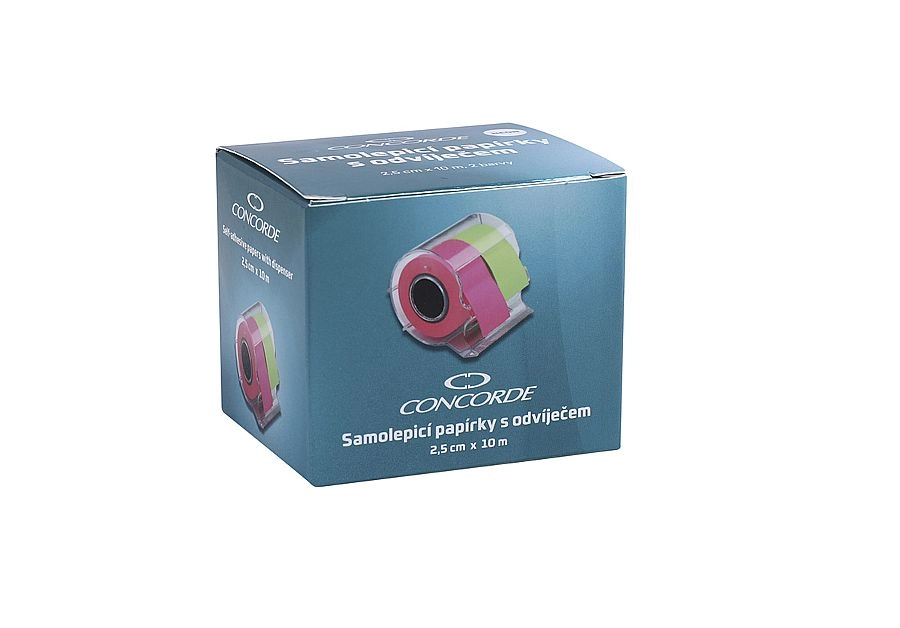 Praktični samolepilni lističi v rolah z odvijalnikom v dveh neonskih barvah (roza in zelena) za hitre zapiske in označevanje. Vsaka rola ima širino 2,5 cm in dolžino 10 m, zadnja stran je v celoti lepilna po vsej širini. Zahvaljujoč integriranemu rezilu si zlahka odtrgate natančno tako dolg listič, kot ga potrebujete. Odlično se oprime papirja in gladkih površin.
