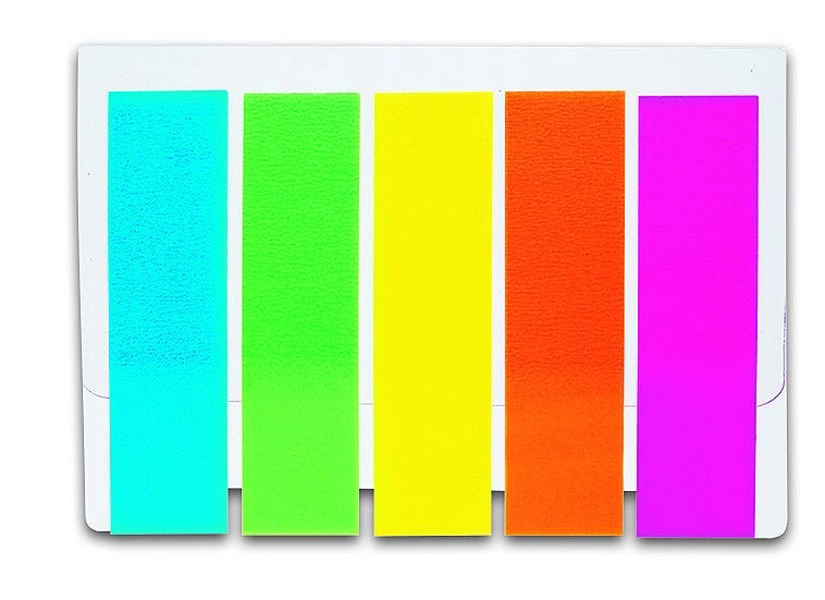 - 5 neonskih barv za pregledno barvno označevanje (modra, zelena, rumena, oranžna, rožnata)
