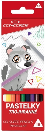 Šolske trikotne barvice CONCORDE v setu 18 živih odtenkov za gladko barvanje in risanje. Izdelane iz kakovostnega lipovega lesa, z odpornim jedrom in ergonomskim trikotnim oblikovanjem za udoben oprijem. Premer jedra 3 mm zagotavlja intenzivne barve in enostavno senčenje. Dobavljeno v kartonski škatlici z motivom Volfíka.