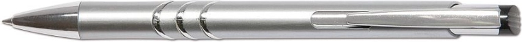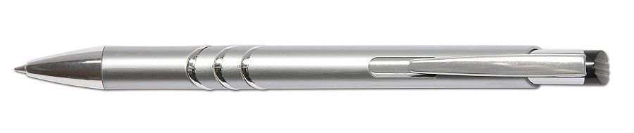 Eleganten kemični svinčnik s praktičnim potisnim mehanizmom, kovinsko sponko in fino širino konice 0,8 mm. Dobavljen v asortirani barvni ponudbi (rdeča, črna, srebrna) s kakovostnim polnilom Silver 4441 za gladko in čisto pisanje.