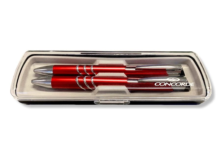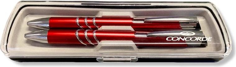 Eleganten darilni set CONCORDE Adriana v plastični škatlici združuje kemični svinčnik 0,8 mm in mehanski svinčnik 0,5 mm. Oba pisalna pripomočka imata odporno plastično ohišje in kovinski sponki za udobno nošenje. Pero je združljivo z modrim polnilom Silver (4441), zato lahko pisanje zlahka podaljšate.