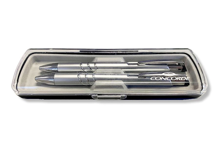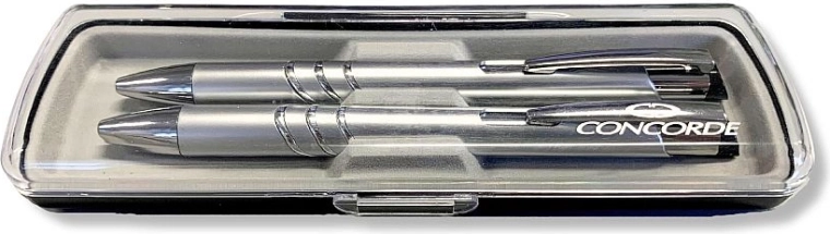 Eleganten darilni komplet CONCORDE ADRIANA v plastični škatlici bo razveselil vsakega, ki ljubi kakovostno pisanje. Vsebuje kemični svinčnik 0,8 mm in mehanični svinčnik 0,5 mm s plastičnim ohišjem in kovinsko sponko. Kemični svinčnik je združljiv z modrim polnilom Silver (4441) za enostavno zamenjavo in dolgo življenjsko dobo.