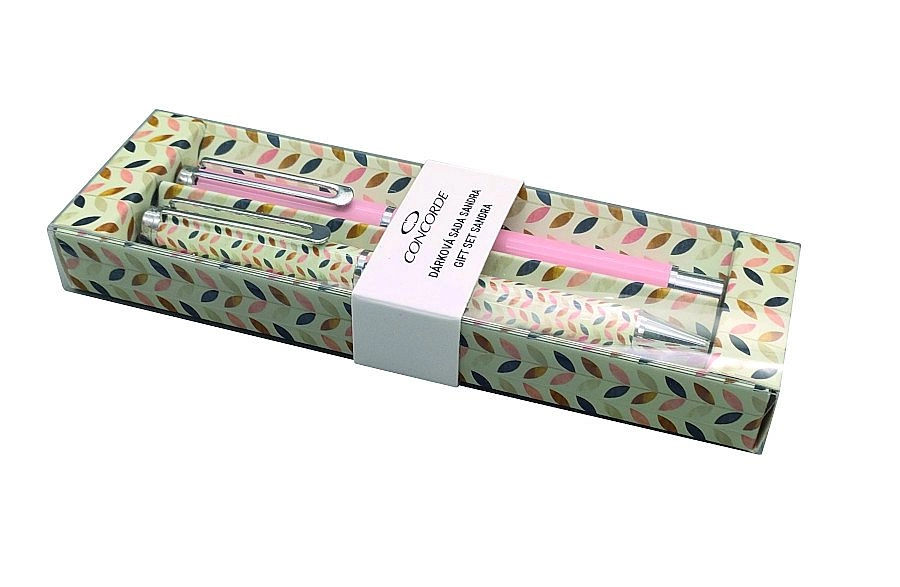 Privoščite si slog in zanesljivost z darilnim kompletom CONCORDE Sandra. Kuličnik z vrtilnim mehanizmom zagotavlja hitro in udobno iztegovanje konice, medtem ko roller v čudovitem rožnatem odtenku ponuja nežen, tekoč zapis brez napora. Celokovinsko ohišje in kovinski sponki dajeta kompletu vzdržljivost in premium videz, ki se odlično poda tako na delovno mizo kot v torbico.