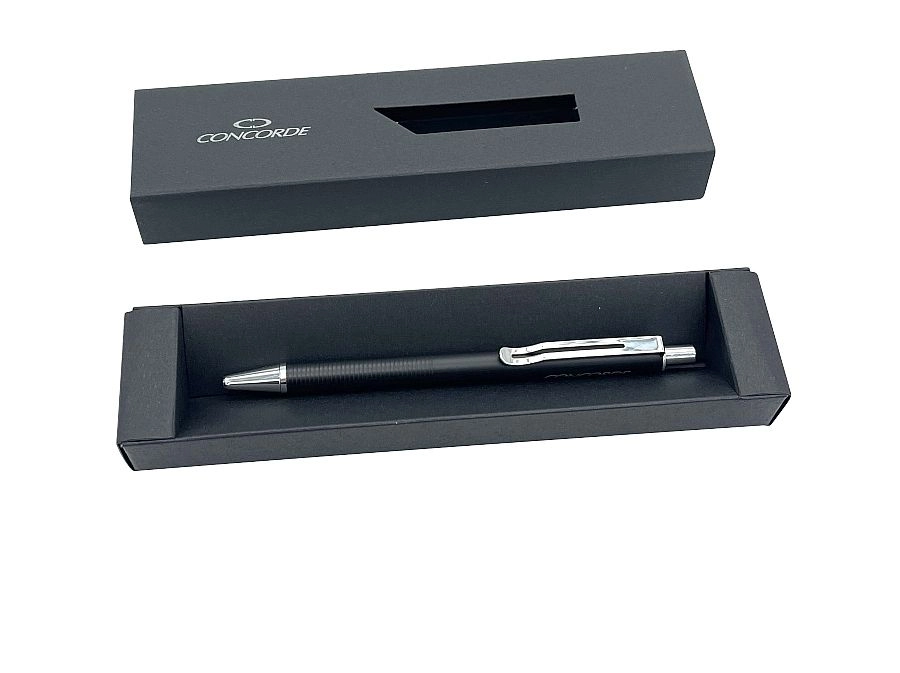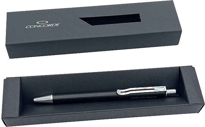 Kemični svinčnik CONCORDE Havana v črni izvedbi je zanesljivo pisalo za pisarno in dom. Kovinsko ohišje deluje prestižno, zaradi ergonomskega, nedrsečega oprijema pa se svinčnik udobno drži tudi pri daljšem pisanju. Potisni mehanizem omogoča hitro in praktično uporabo kadarkoli jo potrebujete.
