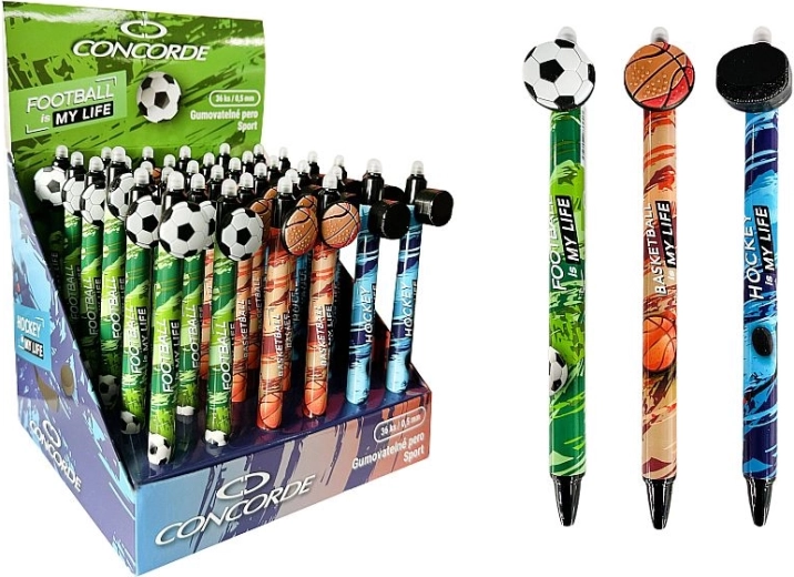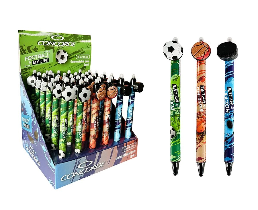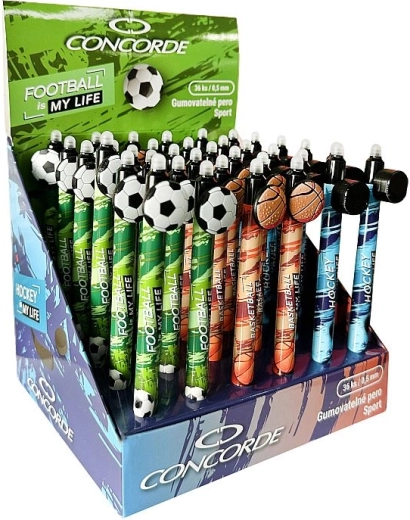 Praktično izbrisljivo gel pisalo Concorde Sport omogoča tekoče pisanje, napake pa preprosto popravite s pomočjo vgrajene radirke na koncu. Zahvaljujoč modremu črnilu, finemu konici 0,5 mm in privlačnemu športnemu dizajnu je idealno za šolo, pisarno in dom.