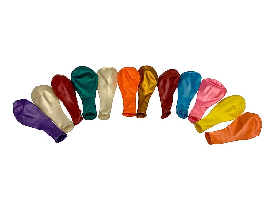 Popestrite vsako zabavo s kovinskimi baloni premera 23 cm v priročnem pakiranju po 12 kosov. Ta kovinski barvni miks doda dekoraciji eleganten sijaj, balone je enostavno napihniti z zrakom ali helijem, zahvaljujoč kakovostnemu lateksu pa izstopajo po odpornosti in daljši obstojnosti.