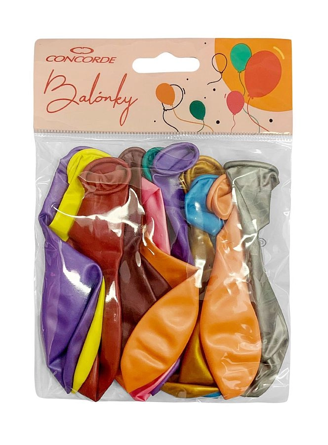 Popestrite vsako zabavo z baloni CONCORDE v kovinski mešanici barv s premerom 30 cm. Priročno pakiranje 12 kosov je idealno za rojstne dneve, poroke in poslovne dogodke. Baloni so vzdržljivi, imajo dolgo obstojnost in jih je mogoče enostavno napihniti z zrakom ali helijem.
