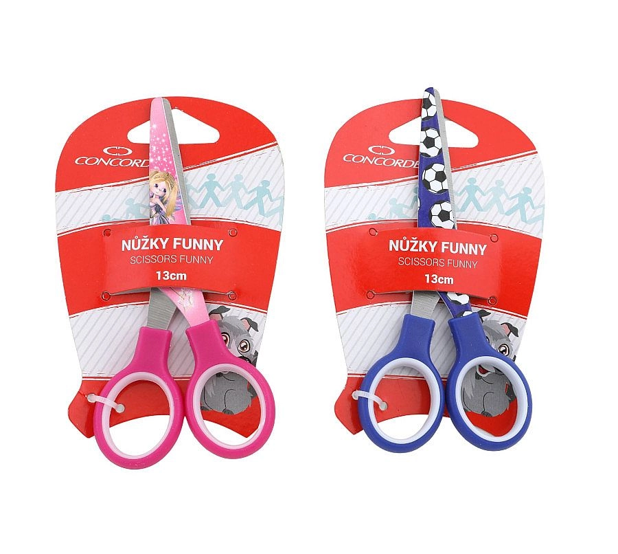 Iščete škarje za otroke za v šolo ali domače ustvarjanje? CONCORDE Funny 13 cm združujejo varnost, udobje in zabaven dizajn. Otroci bodo navdušeni nad motivi z žogo ali princesami, starši pa nad varnostjo zahvaljujoč zaobljenim konicam in kakovostnim kovinskim rezilom.